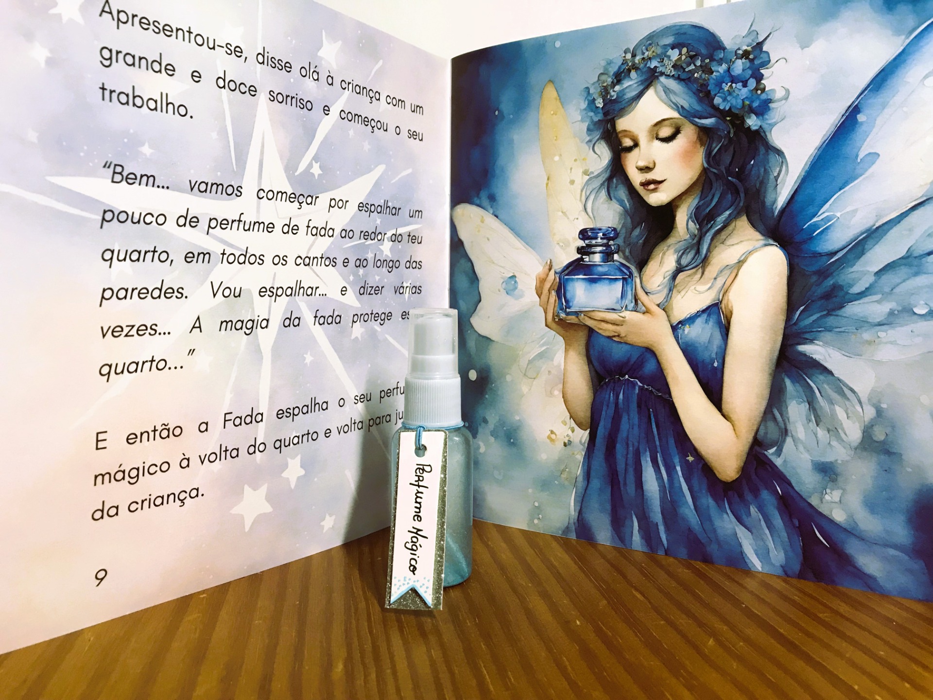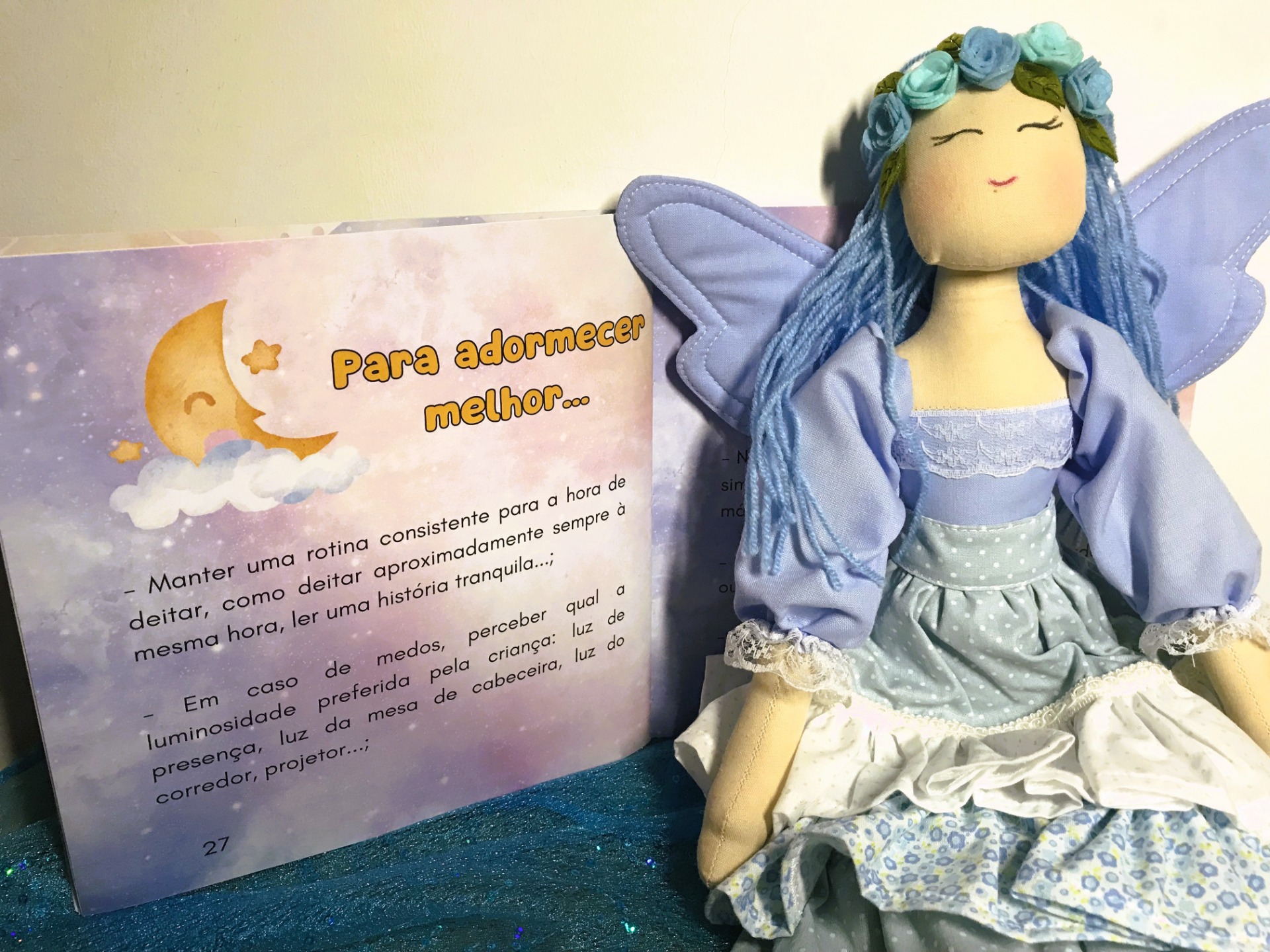 Inclui uma linda fada de pano e um perfume relaxante, composto por ingredientes naturais, para ajudar a adormecer e a acalmar durante o sono.