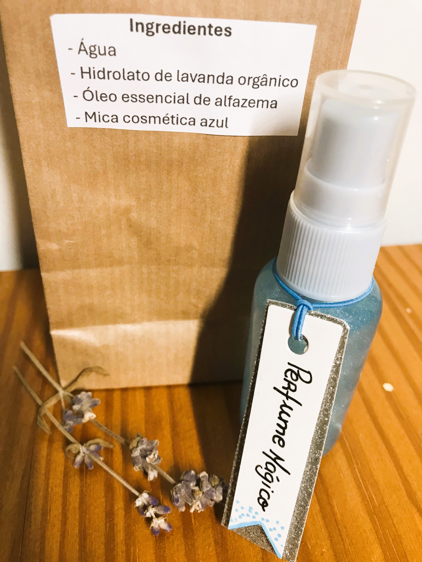 Ingredientes: Água, hidrolato de lavanda orgânico, óleo essencial de alfazema, mica cosmética azul